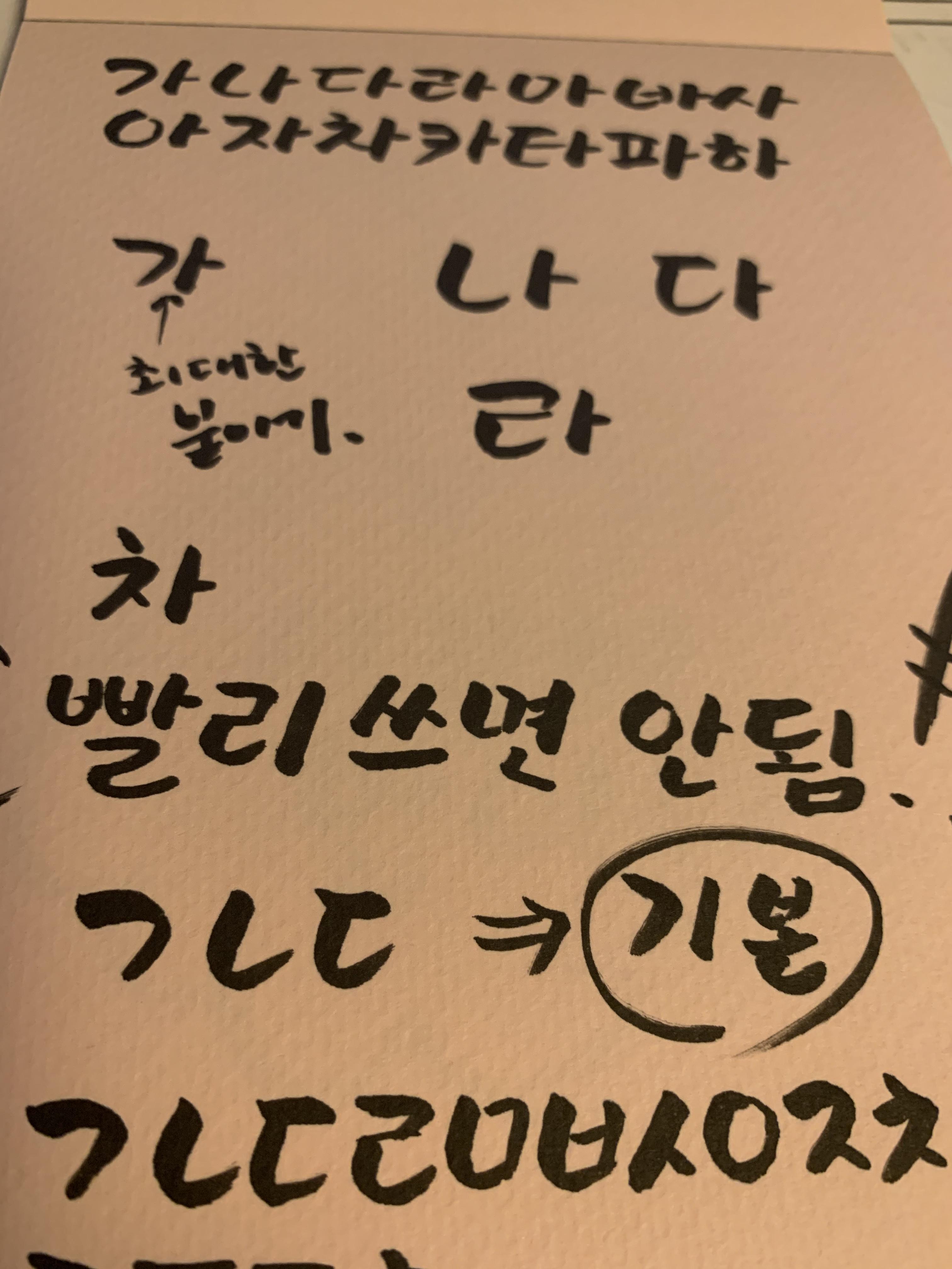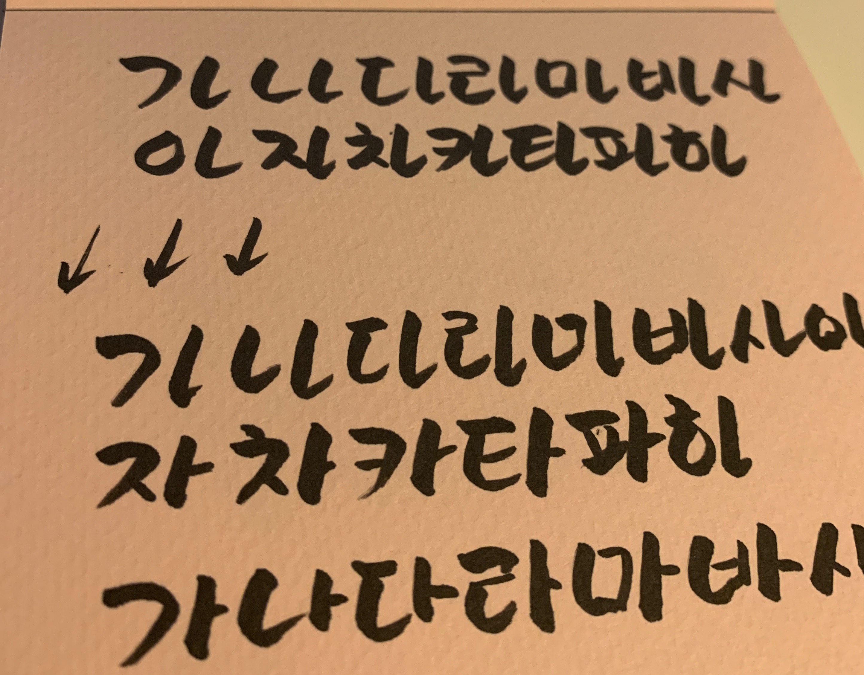 어떤 느낌인지 알것 같았다.. 어릴적 글씨잘 쓰는 척하려고 모음을 크게 썼던 기억이 있다..오히려 글씨가 이상했던 이유가 있었다. !