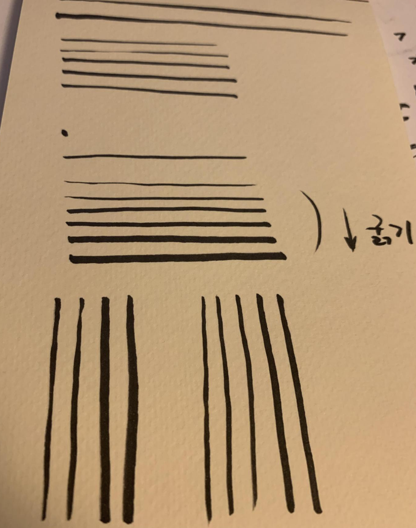 필압을 조절하기 위해, 여러가지 연습이 있었다..